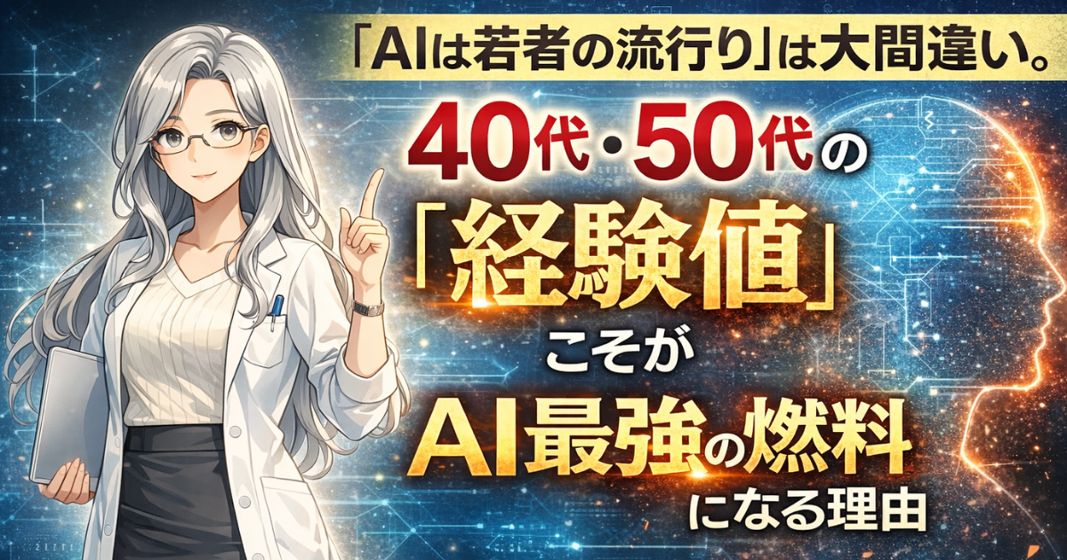 AIは若者だけのものではありません。40代・50代の「経験値」こそが、最大の強みになります。