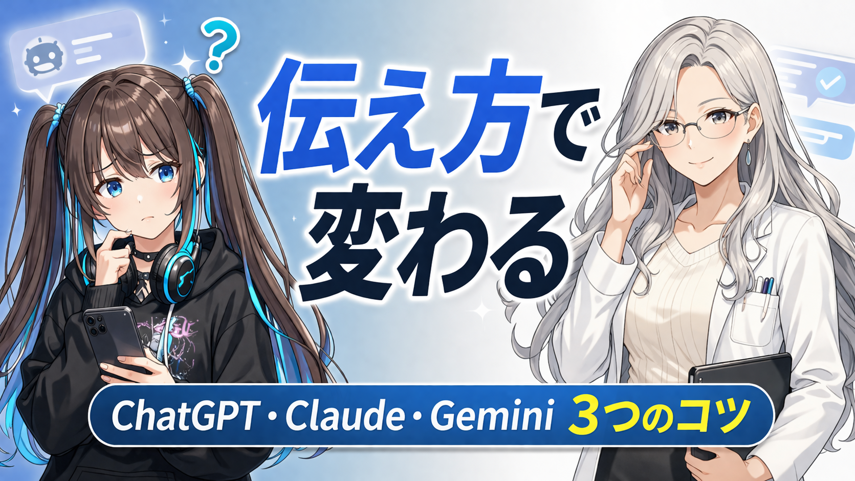 今回は、ChatGPT・Claude・Geminiなど主要AIへの「伝え方」を少し変えるだけで、返答の質がぐっと上がった体験をまとめます。専門知識は不要です。意識するポイントは3つだけです。