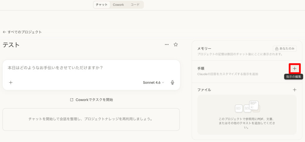 Claudeのプロジェクト設定画面に戻るので、手順欄に入力した指示が表示されているかを確認します。
