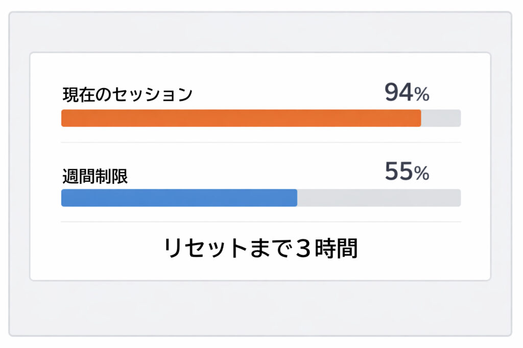 - 週間制限:週単位の使用枠の消費状況。残りが少ない場合は使い方を調整するサインとして見ておく