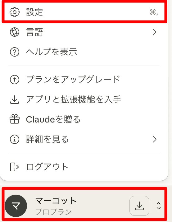 1.左下のプロフィールアイコンをクリックして、設定 を開く